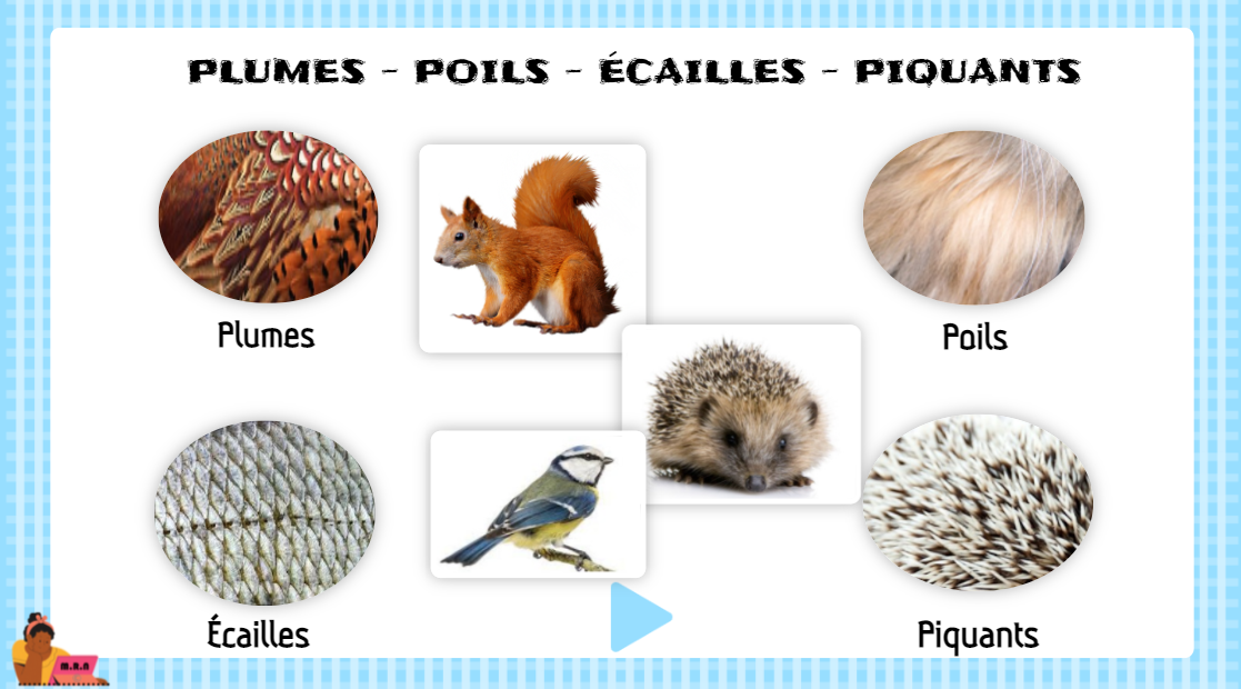 TRI : à Poils, à Plumes, à Ecailles. Télécharger le fichier (format PDF) Le fichier se compose de. - 24 cartes images. - d'une planche correctrice en 2 pages. - de 3 cartes type "cartes de nomenclature" reprenant les consignes (déjà disponible dans les cartes de consignes. Ainsi que la pochette de rangement correspondante.