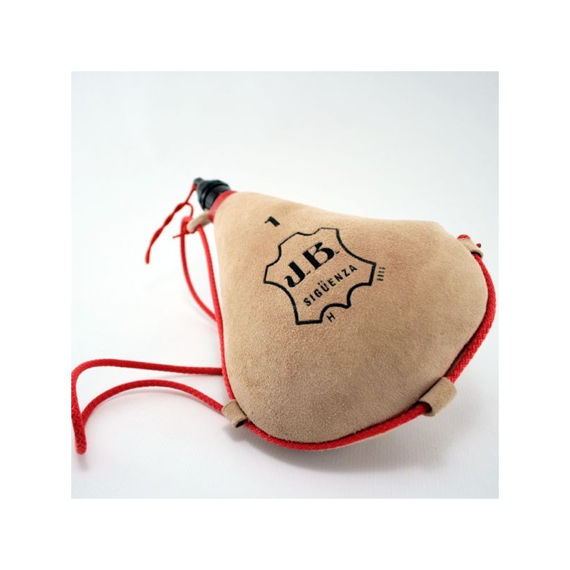 Gourde en peau de chèvre de 1 litre avec revêtement intérieur en résine naturelle. En cuir motifs pois noirs, de confection artisanale espagnole, cette gourde accepte vins, spiritueux, alcools ou tout simplement de l`eau. Revêtement naturel en poix. Bouchon en bakélite, double usage pour boire en jet à la régalade ou à la bouche.
