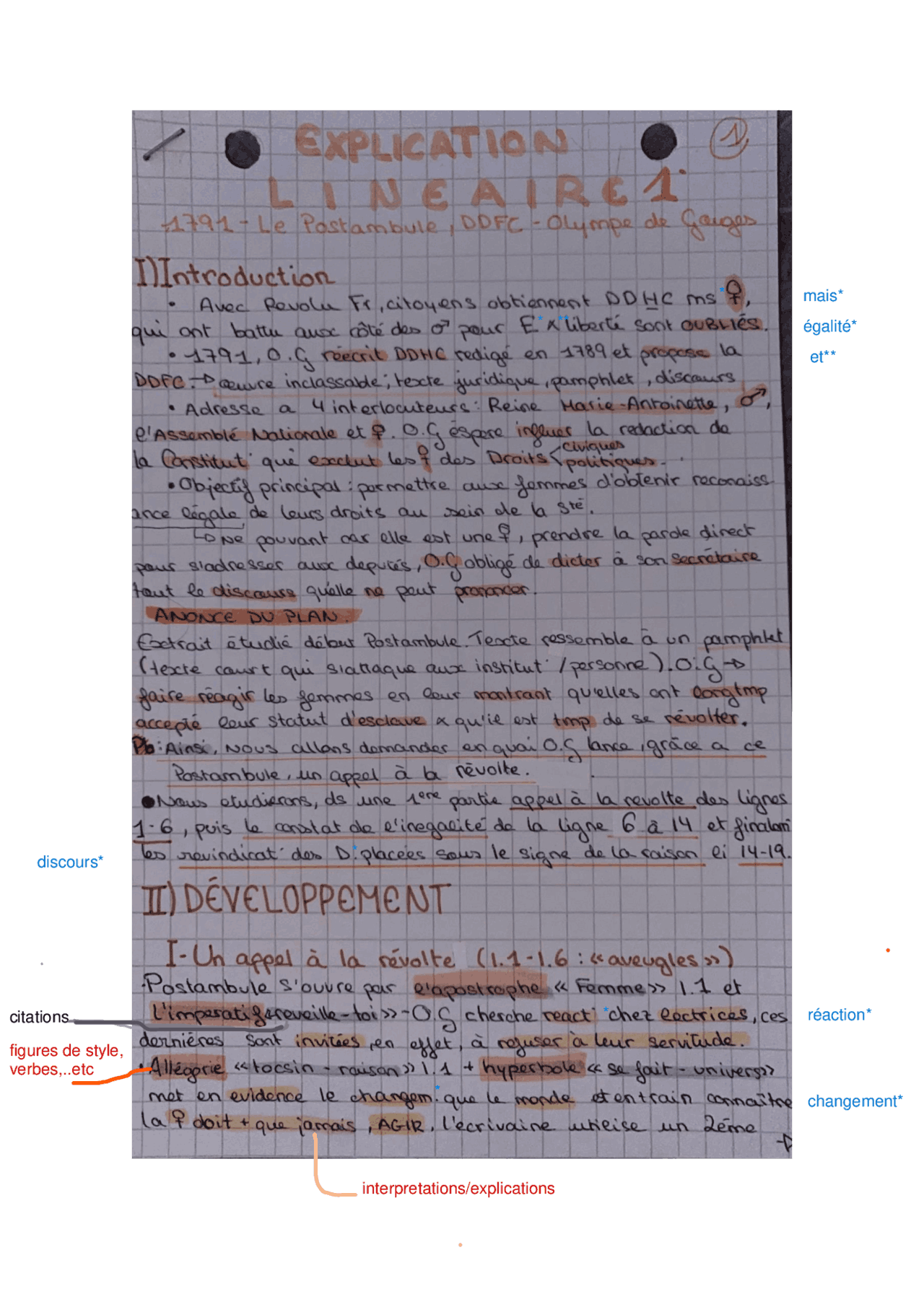 Analyse linéaire préambule Olympe de Gouges DDFC Français Stuvia FR