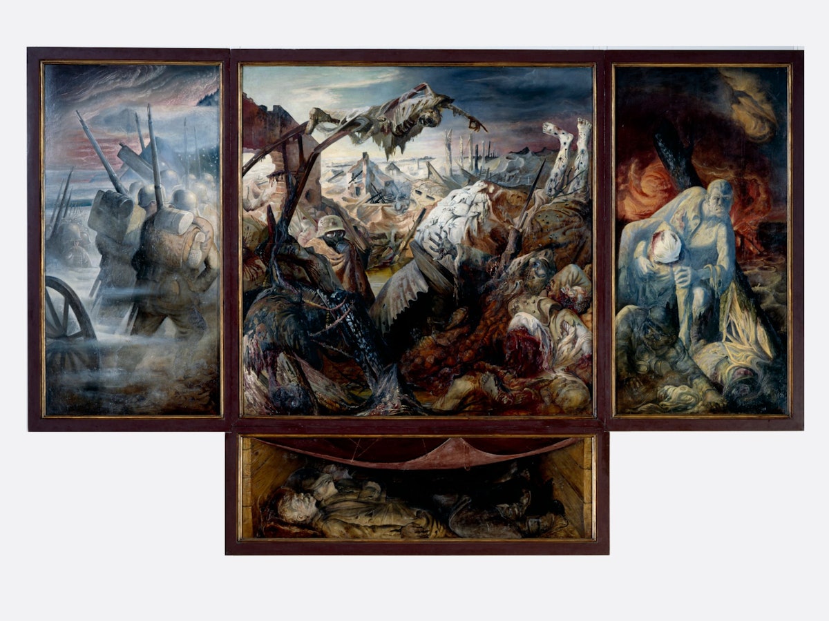 Le tableau "La guerre" est un triptyque à prédelle réalisé par Otto Dix en 1929-1932 plus de 10 ans après l'armistice et la fin de la guerre. Il est aujourd'hui exposé à la Galerie Neue Meister de Dresde en Allemagne. Il représente une image réaliste de la première guerre mondiale mais également son témoignage et ses souvenirs.